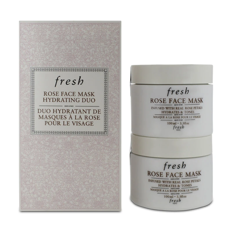 Fresh Rose Face Mask Duo is a set of two hydrating face masks that instantly calms and soothes your skin for a plump effect.
