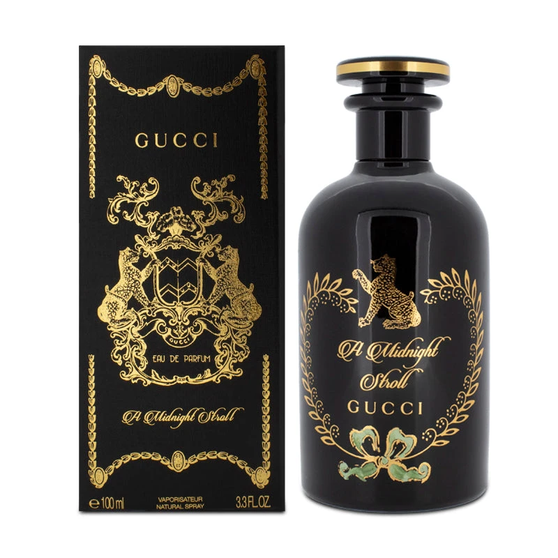 The deep, dark and rich fragrance of the Gucci A Midnight Stroll Eau De Parfum is unforgettable. Inspired by the antique apothecaries and their perfumeries, this EDP creates a magical atmosphere.