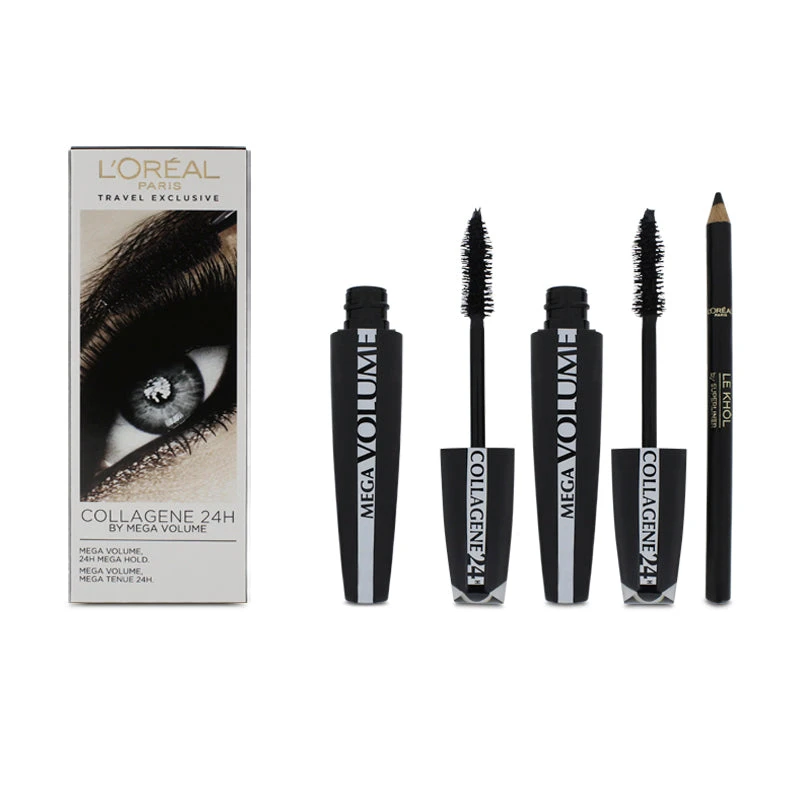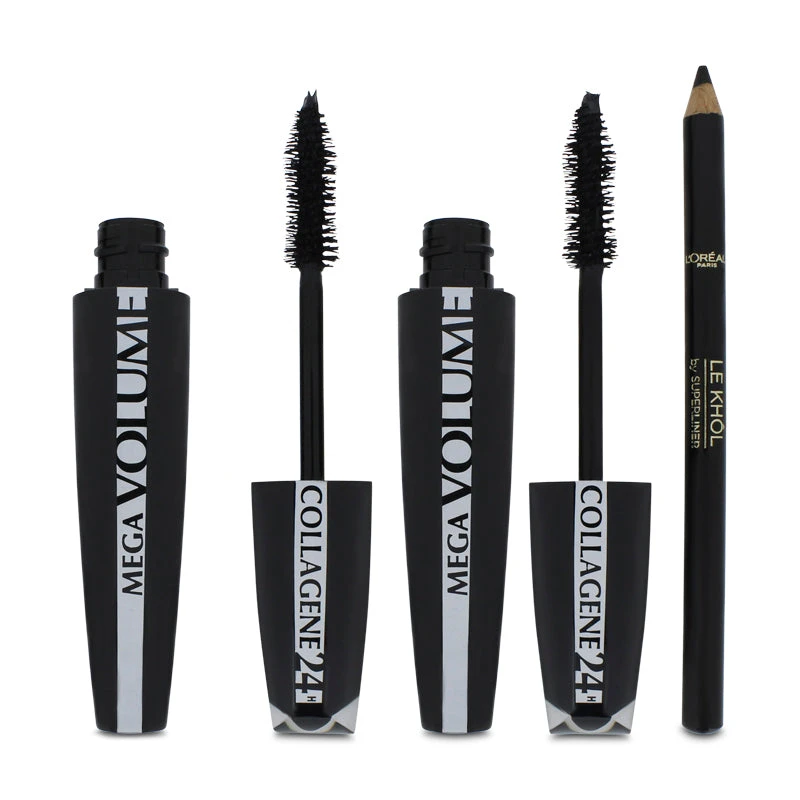 L’Oreal Mega Volume Collagene 24H Black Mascara Twin Pack + Free Eyeliner